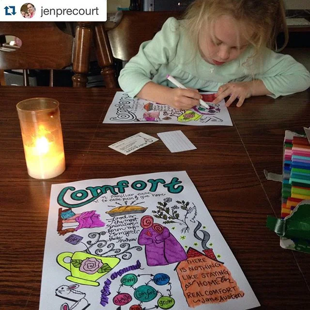 “More comfort on this gray, rainy, not feeling too great day, a little one who is {still} sleeping; coloring comfort with my big girl. Quiet moments of creating & talking together about what brings us comfort. Thanks to the newest issue of #thephoenixsoul for this beautiful coloring page. The whole issue is full of images, words & prompts that have gotten me thinking about how I comfort myself, my family & how I view the idea of comfort. Lots to ponder & think about. If you are looking for some comfort of your own I recommend going to @thephoenixsoul, then go to http://www.thephoenixsoul.com and order yourself a copy of this month’s magazine & spend the afternoon curled up with a cup of tea, a favorite blanket and dive into comfort.”